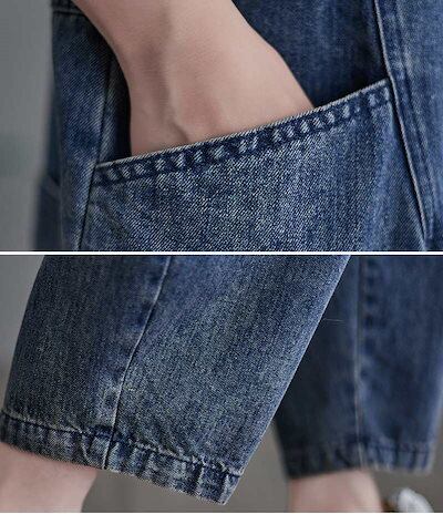 オールインワン デニムサロペット パンツ レディース 夏 春 ポケット付き パンツ 9分丈 無地 ボトムス レイヤード ドッキング サルエルパンツ ロング ゆったり 体型カバー きれいめ カジュアル