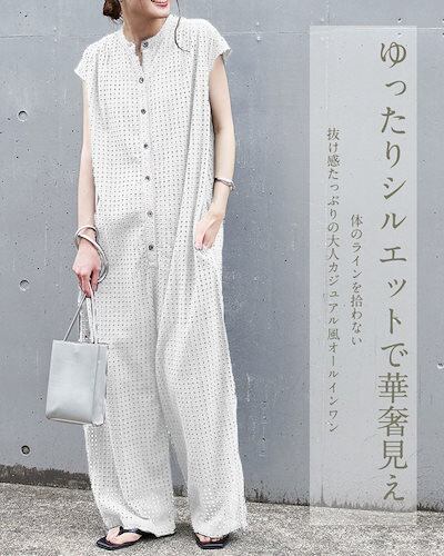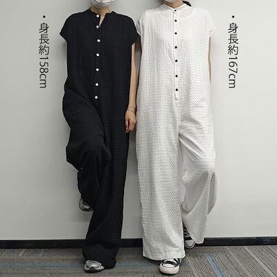 オールインワン レディース サロペット 透かし編み 体型カバー 大きいサイズ つなぎ ワイドパンツ オーバーオール サロぺ パンツ ボトムス ゆったり マタニティ 半袖 袖あり 春 夏