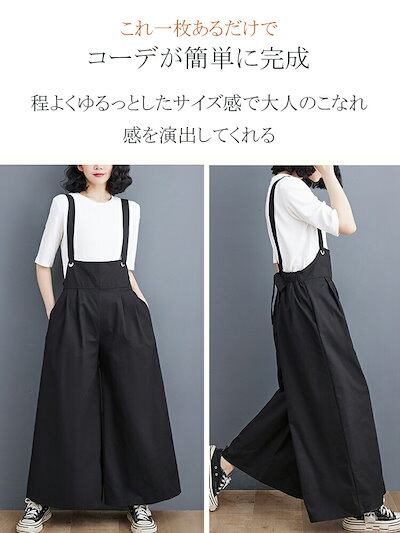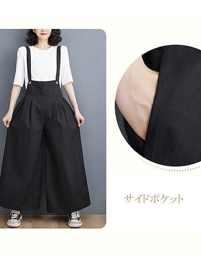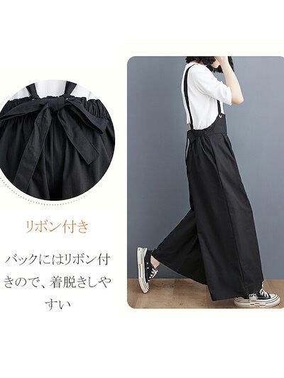 リボン付き オーバーオール レディース サロペット 春夏 オールインワン ワイドパンツ ハイウエスト パンツ きれいめ ゆるパンツ 黒パンツ ボトムス 春 ワイド オーバーサイズ 肩紐 ポケット付き