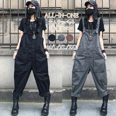 サロペット パンツ オーバーオール レディース オールインワン サルエルパンツ ボトムス シェフパンツ ロング 無地 作業着 仕事着 作業服 長ズボン メンズ ゆるパンツ 春 夏 肩紐 大きいポケット