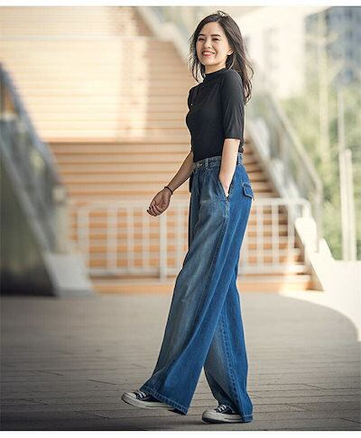デニム パンツ レディース ワイド デニムパンツ 春 きれいめ ロング タック ハイウエスト ボトムス パンツ ストレート 脚長 体型カバー カジュアル ジーパン ジーンズ ロングパンツ 春 夏 秋
