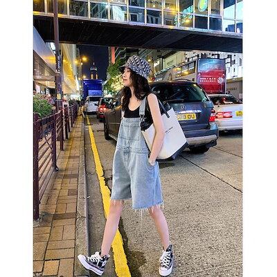 サロペット オーバーオール レディース 春夏 デニムパンツ ショット丈 ワイドパンツ デニムサロペットズボン ゆったり オシャレ 着痩せ カジュアル