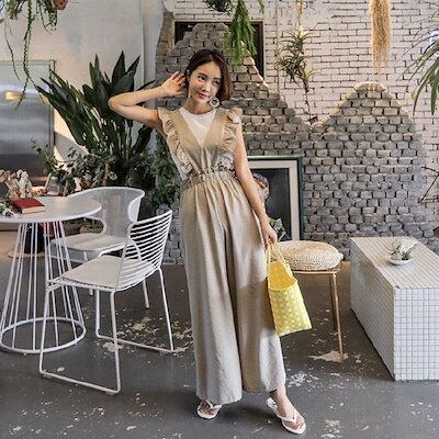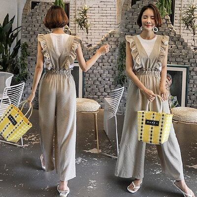 サロペット オーバーオール パンツ レディースロング丈 ワイドパンツ 春夏 ロングズボン フレア 大きいサイズ サロペット オシャレ着痩せ 通勤