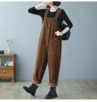 サロペット パンツ レディース 冬 秋 春 オールインワン とろみ感 サロペットパンツ ワイドパンツ 秋冬 コーデュロイ マタニティ きれいめ 着痩せ 大きいサイズ カジュアル オールインワン ゆった