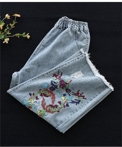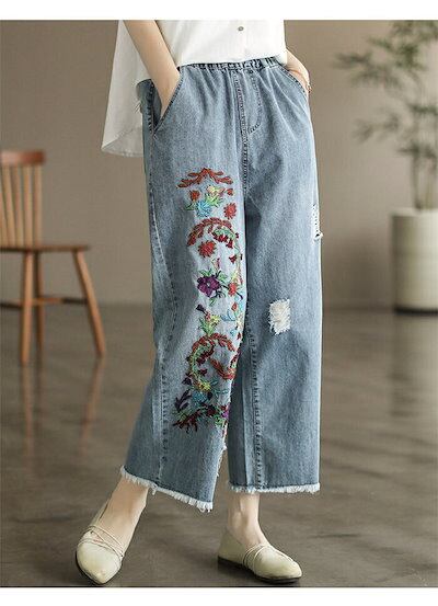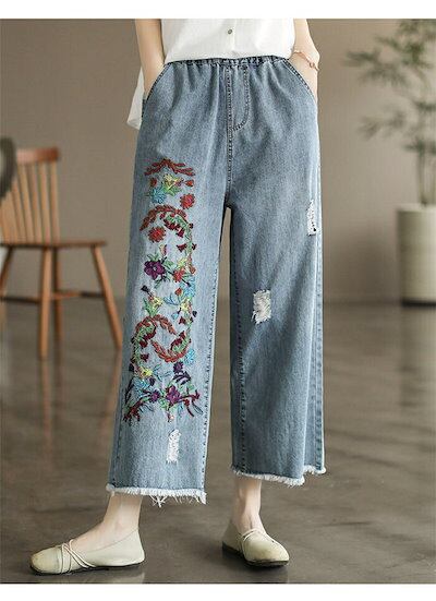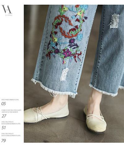 デニムパンツ ワイドパンツ 刺? ストレートパンツ レディース 春 夏 9分丈 ジーパン ゆったり 美脚 デニムパンツ 柔らかい ボトムス チノパン 大きいサイズ 秋 カジュアル ウエストゴム 体型カ