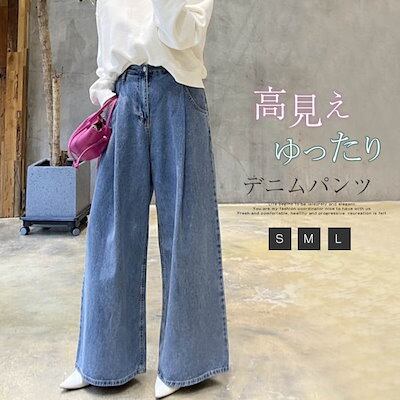 ワイドパンツ デニムパンツ レディース 春 夏 ガウチョ デニムワイドパンツ ゆったり スカーチョ 長パンツ 体型カバー 大きいサイズ スカンツ ワイドルーズ 大人 ボトムス ハイウエスト ゆったり