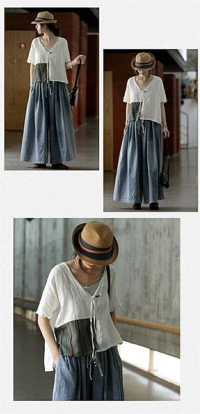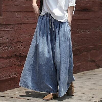 ワイドパンツ レディース デニム ガウチョパンツ デニムワイドパンツ 夏 秋 春 大きいサイズ ゆったり ボトムス デニムパンツ フレアパンツ イージーパンツ 体型カバー ウエストゴム 無地 リラック