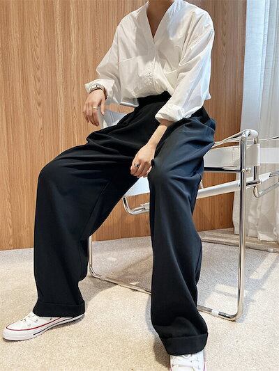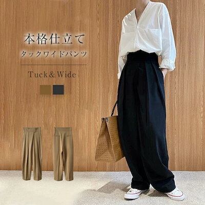 タックワイドパンツ レディース 春 夏 ボトムス カーブパンツ ワイドパンツ タック スラックス 美シルエット オリジナル タックパンツ ロング マジックテープ 秋 上品 すっきり きれいめ 大人 通
