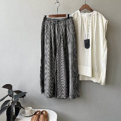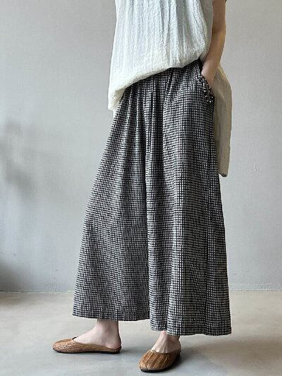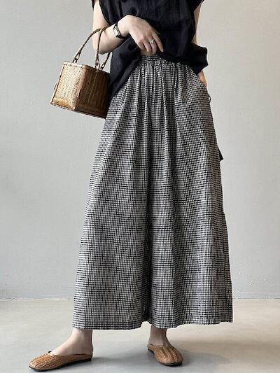 ワイドパンツ クロップドパンツ レディース チェック柄 春 夏 スカンツ ロング丈 体型カバー パンツ ゆったり カジュアル ナチュラル 着痩せ ボトムス 大人 ロング 秋 ガウチョ 大きいサイズ 薄