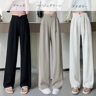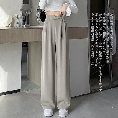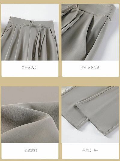 ワイドパンツ レディース タック入り イージーパンツ 春 夏 後ろウエストゴム ロングパンツ タック ポケット付き ロング丈 ゆったり ガウチョパンツ オフィス ボトムス ボリューム ワイド カジュア