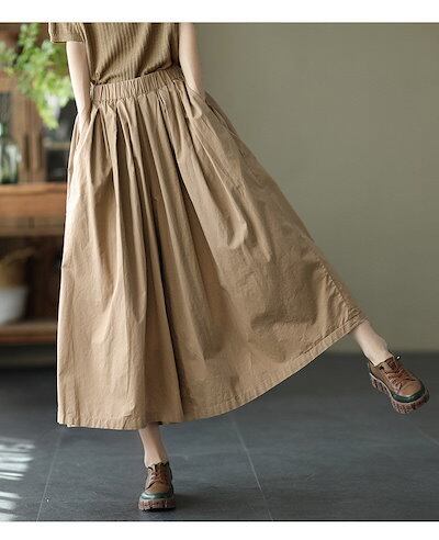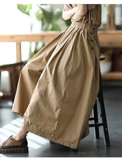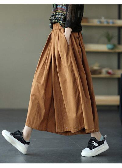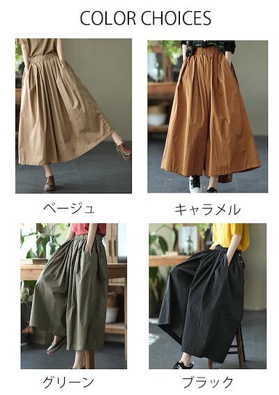 ワイドパンツ スカート風 レディース 綿 ガウチョパンツ 春 夏 ウエストゴム ハイウエスト タックパンツ 9分丈 ポケット付き ロング丈 ロングパンツ ゆったり オフィス ボトムス ボリューム ワイ