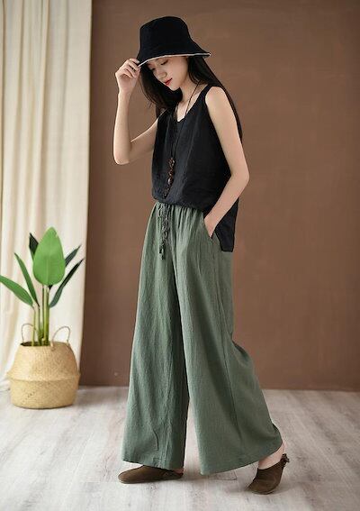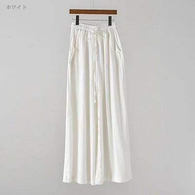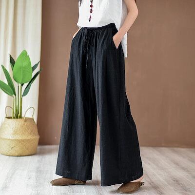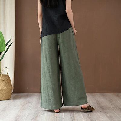 ワイドパンツ レディース きれいめ 大きいサイズ パンツ おしゃれ 綿麻風 夏 前垂らし ひんやり ロングパンツ 春夏秋 無地 レディース ボトムス イージーパンツ 体型カバー ストレートパンツ 着痩