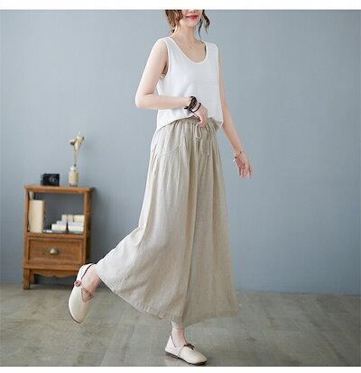 綿麻パンツ レディース 夏 ワイドパンツ パンツ リネン ガウチョパンツ 大きいサイズ ゆったり ワイド スカーチョ 春夏 きれいめ マキシ丈 ワイドパンツ ロング 着痩せ 美脚 スカンツ 体型カバー