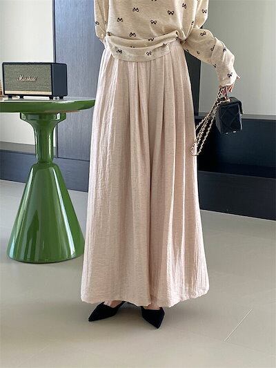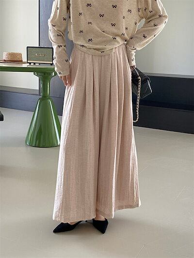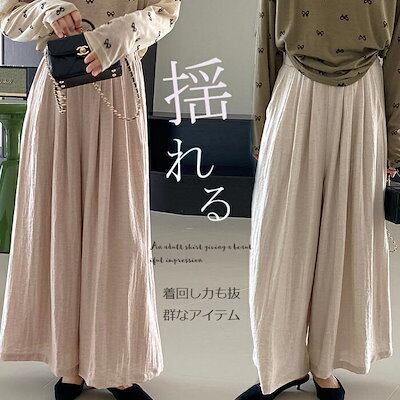 ワイドパンツ 夏 レディース ロングパンツ パンツ ボトムス ワイド フレアパンツ リネンパンツ イージーパンツ ガウチョパンツ ウェストゴム ハイウェスト 春夏 ゆったり カジュアル キレイめ リラ