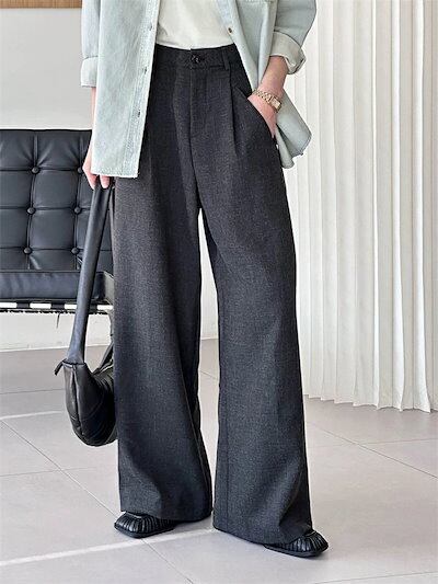 ストレートパンツ レディース ハイウエスト パンツ ワイド ワイドパンツ ロングパンツ 春夏 ストレート ボトムス ゆったり ワイドパンツ ロング丈 セミワイド ボリューム タック ポケット 美脚 タ