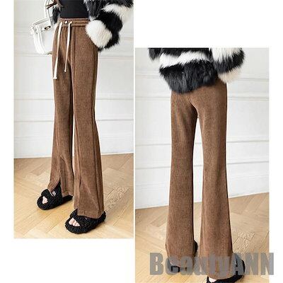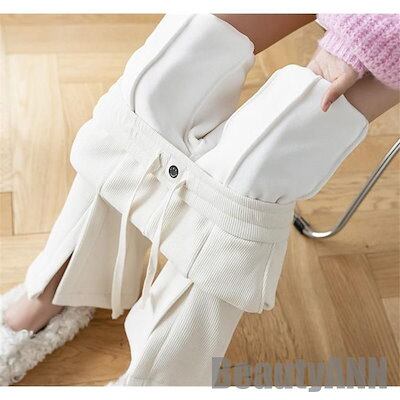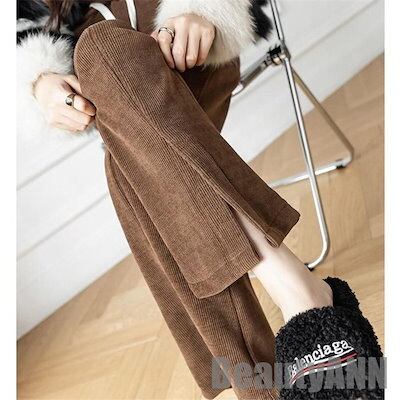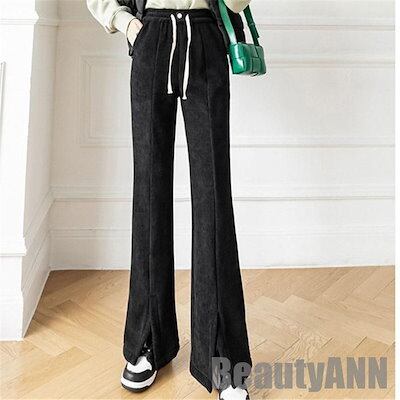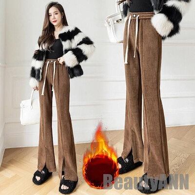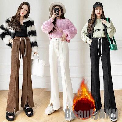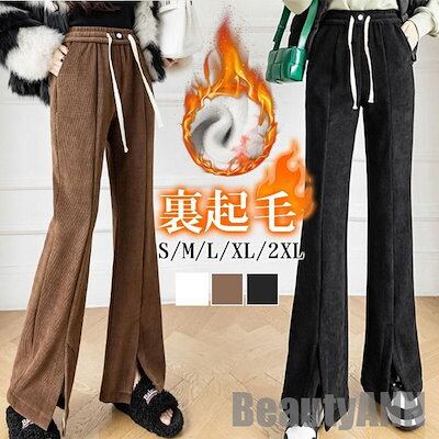 新生活 ワイドパンツ レディース 秋 冬 裏起毛 スリット ガウチョパンツ ウエストゴム 暖かい ゆったり あったかい 防寒 ロング パンツ ボトムス プレゼント ギフト