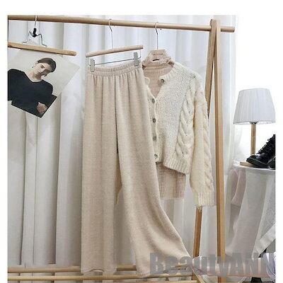 新生活 ワイドパンツ レディース 秋 冬 ニット ウエストゴム ガウチョパンツ 暖かい ゆったり あったかい 防寒 ロング ボトムス 体型カバー プレゼント ギフト
