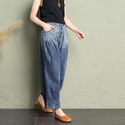 デニムパンツ レディース 大きいサイズ デニムワイドパンツ サルエルデニムパンツ ガウチョ ゆったり 着痩せ ウエストゴム 大人 カジュアル 可愛い