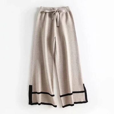 ニットパンツ ニットワイドパンツ レディース ワイドパンツ 配色 暖かい ニット ロングパンツ ガウチョパンツ リラックスパンツ 秋冬 きれいめ オシャレ サイドスリット ハイウエスト ワイドニットパ