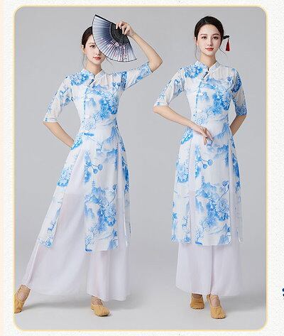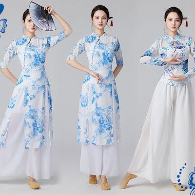 ダンス衣装 エレガント 花プリント 5分袖 長袖 メッシュ トップス シフォン ガウチョパンツ ワイド パンツ フレアスカート ふんわり シフォン パンツ ダンス レッスン着 レディース 大人 ダンス