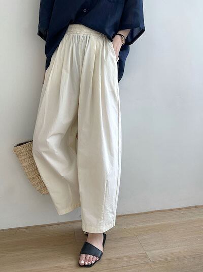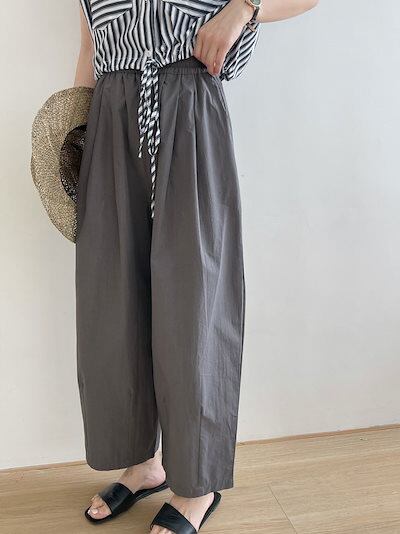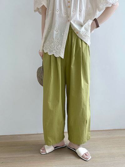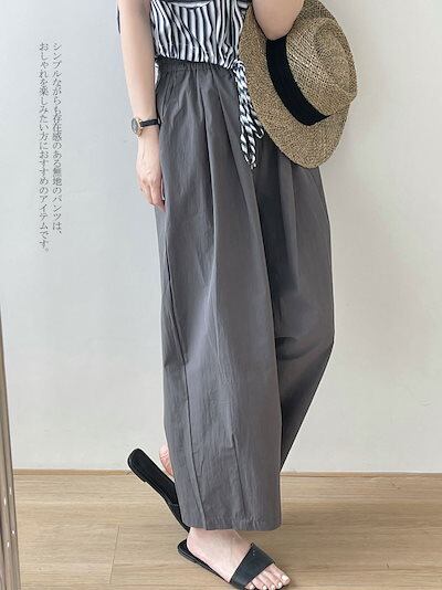 ストレートパンツ レディース 9分丈 パンツ ウエストゴム ロングパンツ ポケット付き ボトムス ズボン ストレート 長ズボン 無地 ガウチョパンツ ワイドパンツ 高見え タックパンツ ゆったり 体型