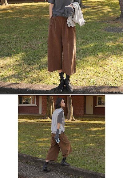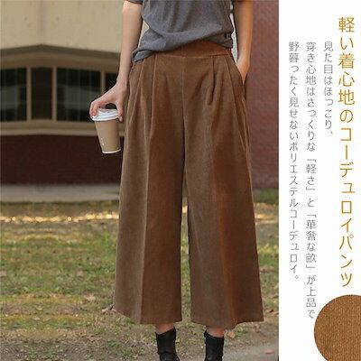 ワイドパンツ コーデュロイ レディース 大きいサイズ ロング丈 パンツ ロングパンツ ふんわり 秋冬 暖かい ボリューム 冬 ゆったり アンクルパンツ 九分丈 体型カバー 美脚 細見え ガウチョパンツ