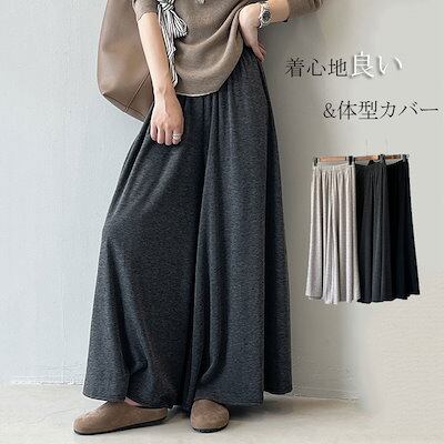 ワイドパンツ スカーチョ スカンツ 秋 春秋 ロング パンツ ガウチョ レディース ボトムス きれいめ フレアパンツ フレア ワイド ガウチョパンツ 美脚パンツ ロングパンツ ウエストゴム 無地 シン