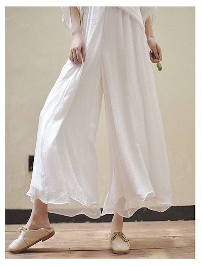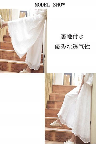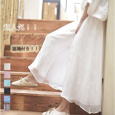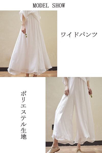 ワイドパンツ スカンツ レディース スカートパンツ ワイド ロングパンツ 無地 長ズボン ガウチョパンツ 前垂感 ウエストゴム ハイウエスト ふんわり シワ感 リゾート ゆったり ボトムス カジュアル