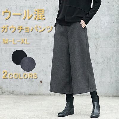 ワイドパンツ 秋冬 微起毛 スカーチョ 秋冬 レディース ガウチョ ウール調 ゆったり パンツ 9分丈 ウエストゴム フォーマル ガウチョパンツ 大きいサイズ 九分丈 微起毛 イージー