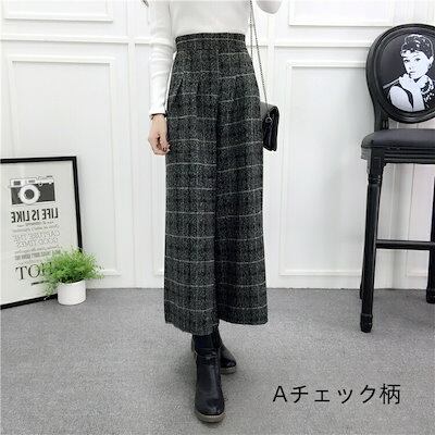 パンツ ワイドパンツ スカーチョ バギーパンツ ガウチョパンツ チェック柄 暖かい 九分丈 体型カバー 秋 冬 レディース ボトムス ワイド ゆったり カジュアル 大きいサイズ 美脚 細見え 防寒 秋