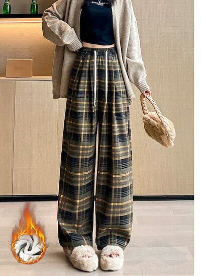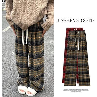 パンツ ワイドパンツ スカーチョ バギーパンツ ガウチョパンツ チェック柄 裏起毛 暖かい 九分丈 体型カバー 秋 冬 レディース ボトムス ワイド ゆったり カジュアル 大きいサイズ 美脚 細見え