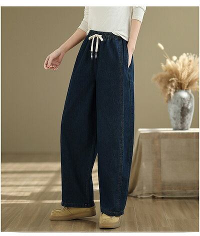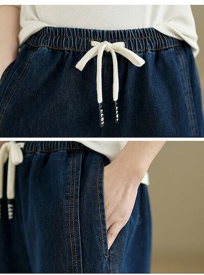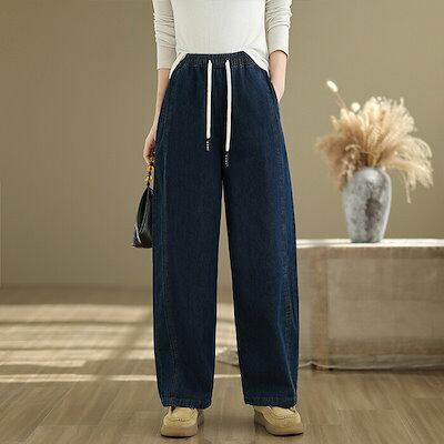 ワイドパンツ レディース デニムパンツ 春秋 デニム パンツ ジーンズ ジーパン ガウチョパンツ ボトムス ウエストゴム リラックスパンツ ゆったり 体型カバー 大人 カジュアル 着?せ 美脚 おしゃ