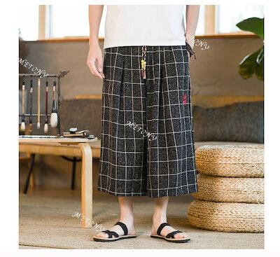 ワイドパンツ メンズ ワイド パンツ 夏 サルエルパンツ 綿混紡 ワイドパンツ レディース ビッグシルエット ゆるゆる ガウチョパンツ ボトムス サルエル 袴パンツ メンズ チャック柄 ストライプ 大