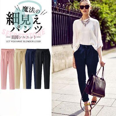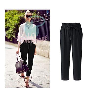 テーパードパンツ パンツ レディース ボ ストレッチ 九分丈 ウエストゴム 体型カバー 伸びる楽ちん オフィス 就活 通勤 ズボン 無地