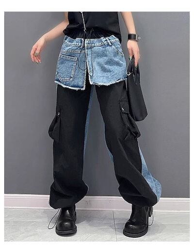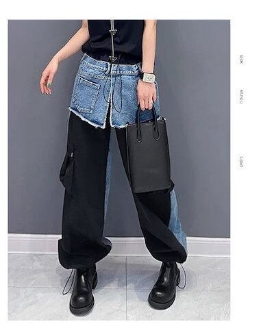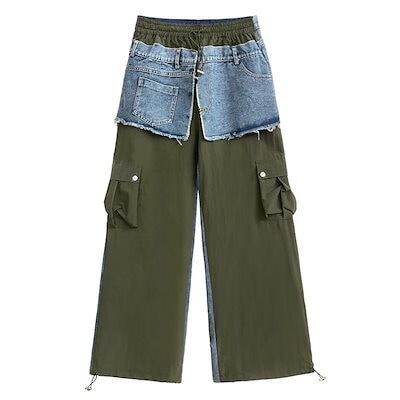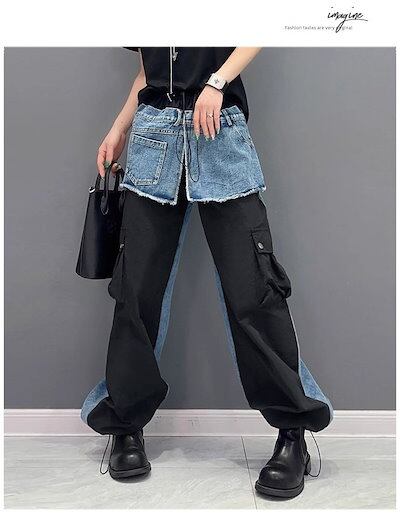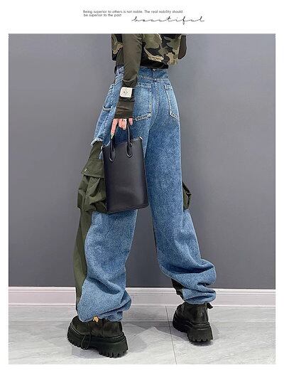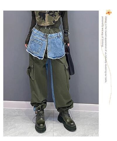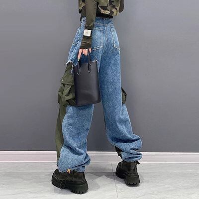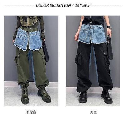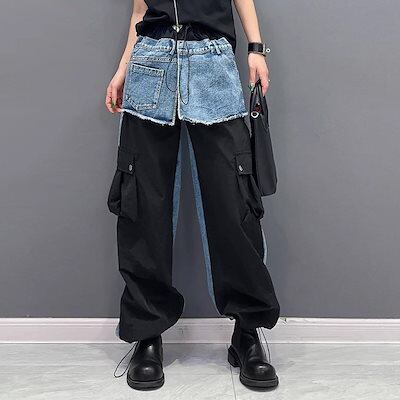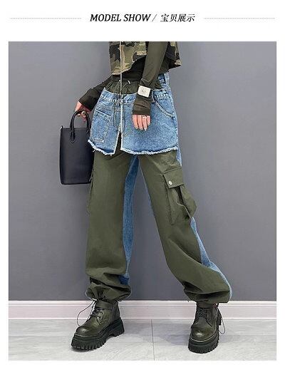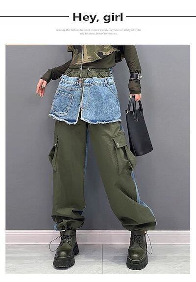 【J.Fashion】 春秋 デニムドッキング ロングパンツ 欧美風 カーゴパンツ レディース ロングパンツ メガ割