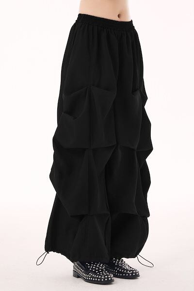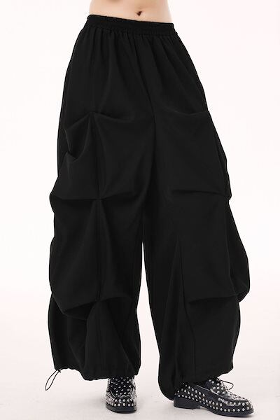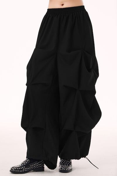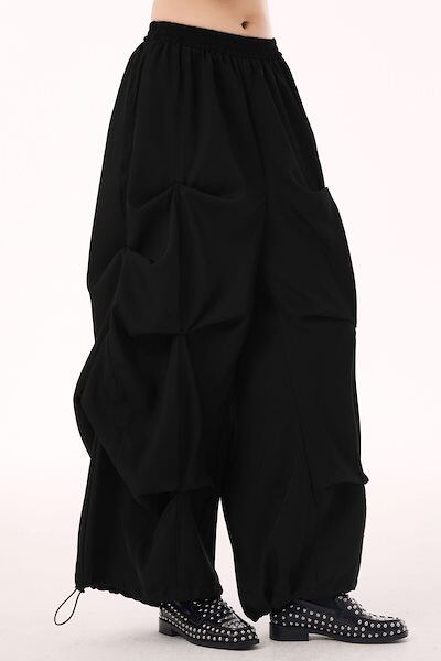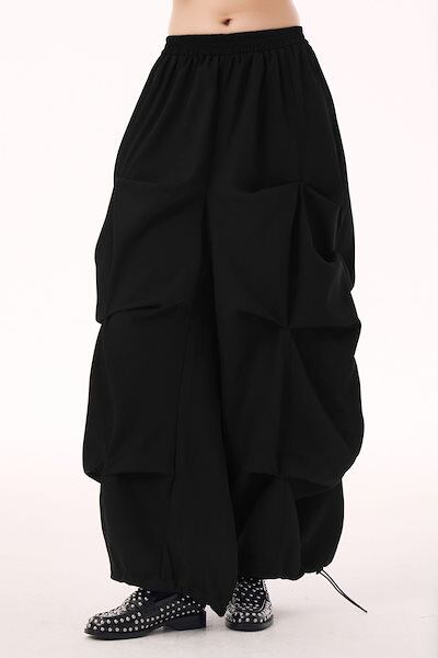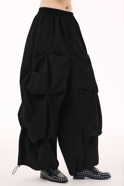 【J.Fashion】 ロングワンピース 巾着 皺デザイン スラックス おしゃれ レディース ワイドパンツ 関連商品購入可能 メガ割