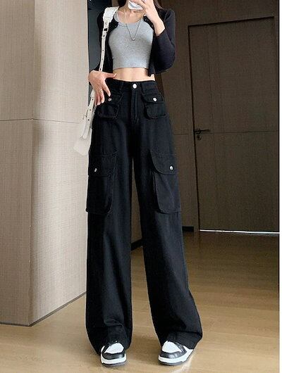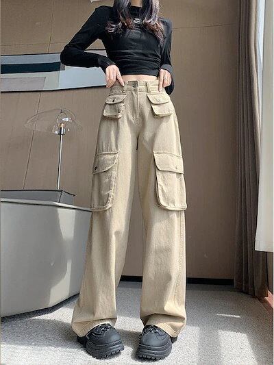 【1つ買うと1つ無料】【メガ割 】ハイウェスト カジュアル ロングズボン デニムボトムス たり ストレートパンツ レディース ゆっ カーゴパンツ1