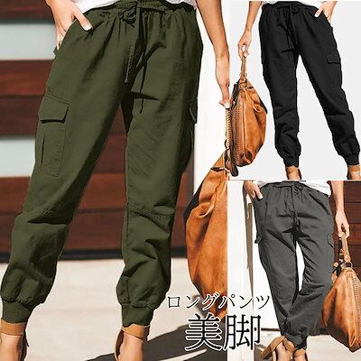 カーゴパンツレディースロングパンツミリタリーパンツチノパンワークパンツカジュアルボトムス無地大きいサイズおしゃれダンス衣脚