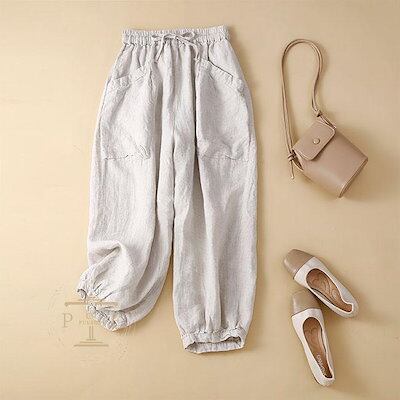 【毎日厳選 】 リネンパンツ ゆったり レディース サルエルパンツ 夏 バルーンパンツ 薄手 イージーパンツ カジュアルパンツ 9分丈 ズボン 大きいサイズ