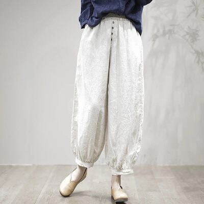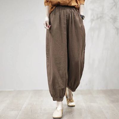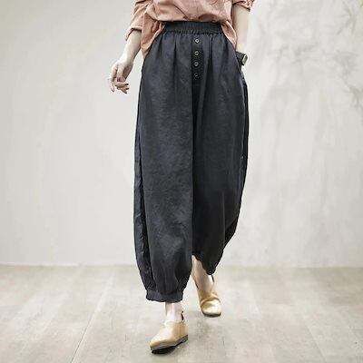 夏 ひんやりボトムス ハーレムパンツ レディース ワイドパンツ ゆったり 綿麻 スキニーパンツ  伸縮性のあるウエスト 着やせ 体型カバー お肌に優しい 快適
