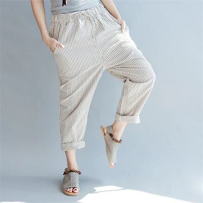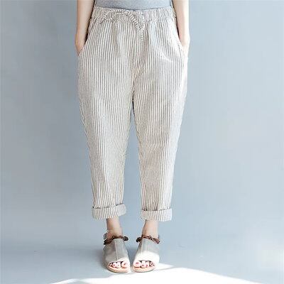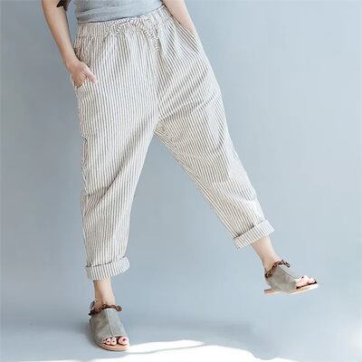 ボトムス 涼しい カジュアル ストライプ 春 サルエルパンツ ゆったり パンツ レディース サルエル 7分丈 夏
