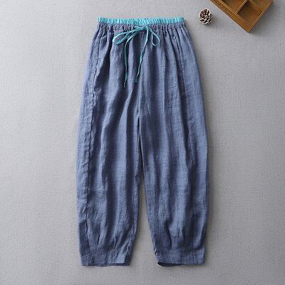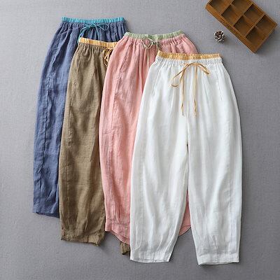 2023 夏 伸縮性のあるウエスト パッチワーク 綿麻 ゆったり 快適性 九分丈パンツ ハーレムパンツ カジュアルパンツ レディース