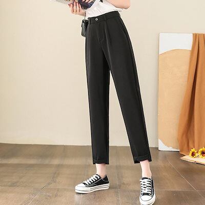 九分丈パンツ ハーレムパンツ パンツスーツ ハイウェスト 下首 カジュアル ワイドパンツ 夏 薄い ストレートパンツ