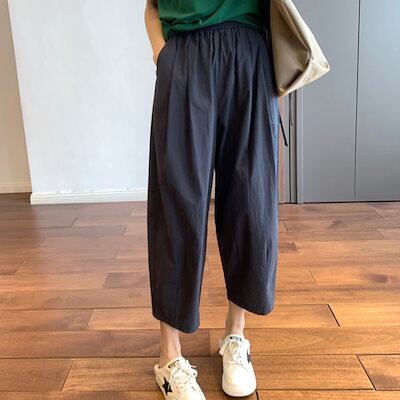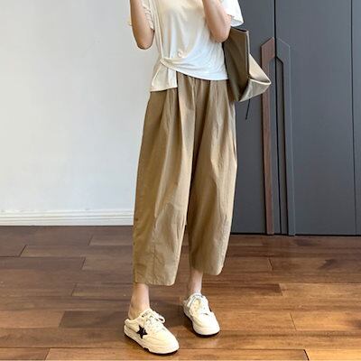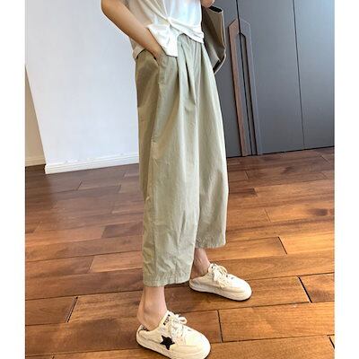 日系 カジュアル レディース ワイドパンツ 夏 ストレートパンツ コーディネート 九分丈パンツ ハーレムパンツ ジョガーパンツ