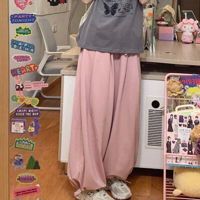 ソフト萌え妹 超ゆったり ワイドパンツ レディー 夏の新作 百掛け カジュアルパンツ 薄手 スウェットパンツ かわいい 学生用ズボン