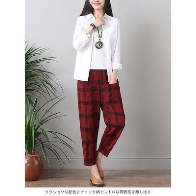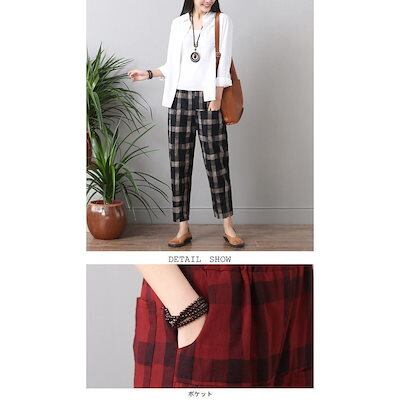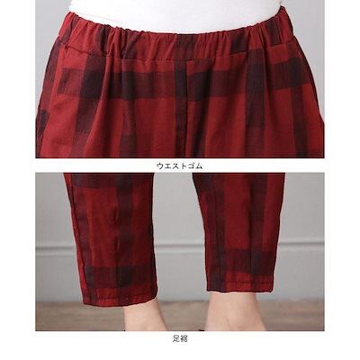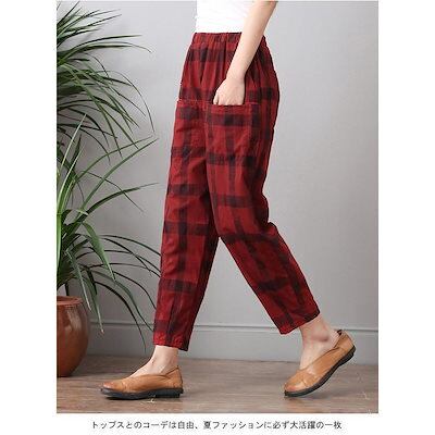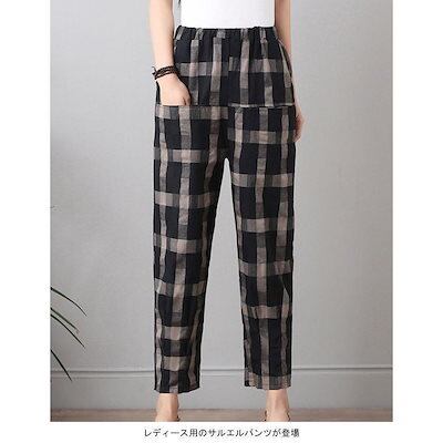 【GUANGYU】サルエルパンツ 九分丈 レディース リネンパンツ チェック柄 パンツ ゆったり ウエストゴム 女性 九分丈パンツ 夏 薄手 爽やか お洒落