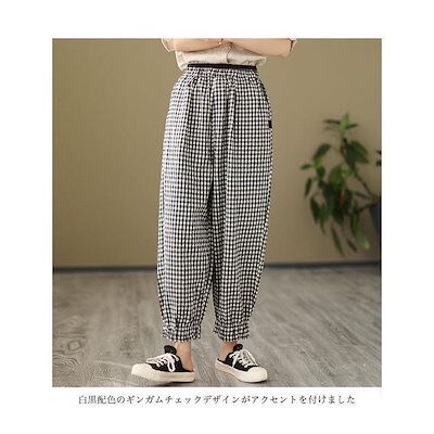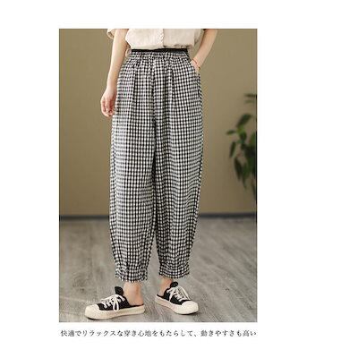 【GUANGYU】バルーンパンツ ギンガムチェック サルエルパンツ 九分丈 レディース バギーパンツ 薄手 サマーパンツ ゆったり 体型カバー 夏 ウエストゴム 春