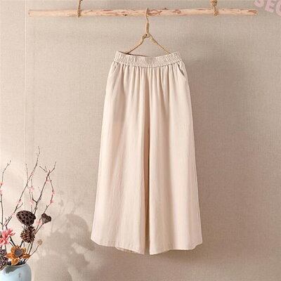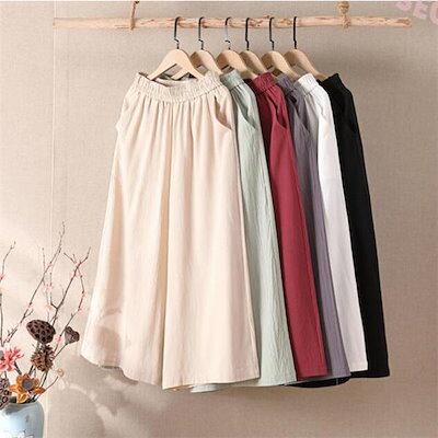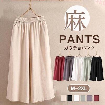 新品(タイムセール)ガウチョパンツ レディース ワイドパンツ リネン風 ウエストゴム 綿 コットン ゆったり 洗える 体型カバー ロング丈 ナチュラル ボ