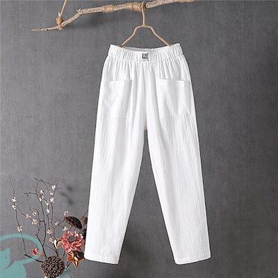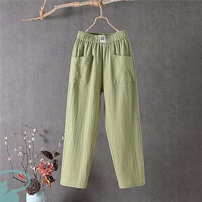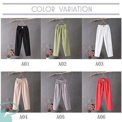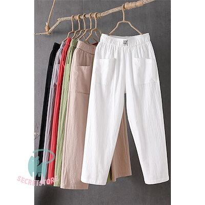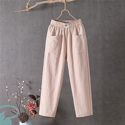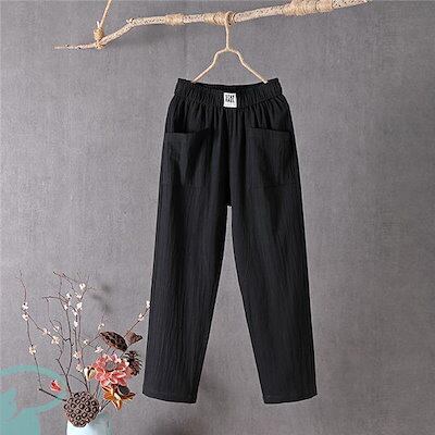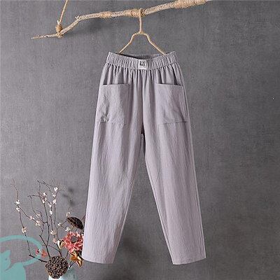 新品(タイムセール)サルエルパンツ テーパードパンツ レディース リネン風 大きいサイズ ウエストゴム コットン 洗える 体型カバー ロング丈 ナチュラル ボ