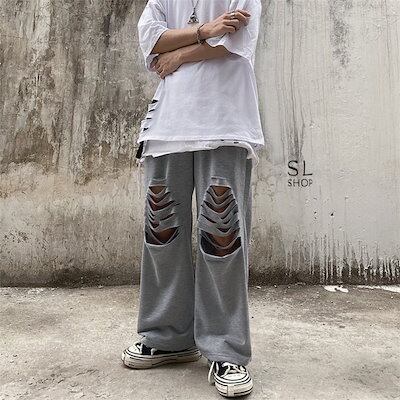 ワイドパンツ レディース メンズ ジャージパンツ カット入り 薄手 ウエストゴム 男女兼用 おしゃれ